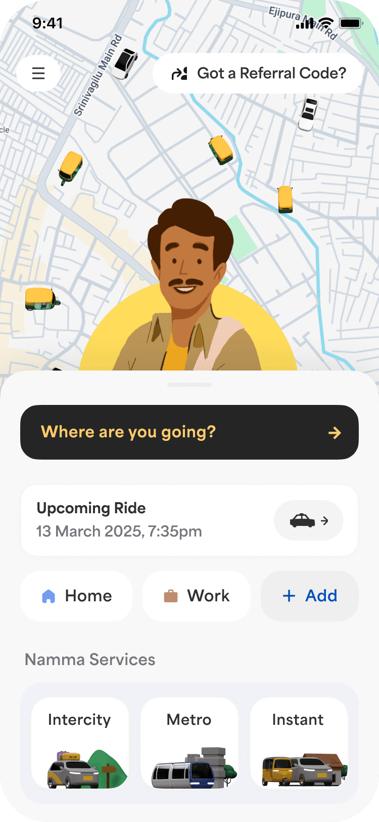 With Namma Yatri, I got to execute the 0 → 1 design of rider and driver experiences for India’s first zero-commission ride-hailing platform, now used by over 5 million people nationwide. Worked across iOS and Android to optimize flows for ride-hailing, ticketing, and courier services, while collaborating with partners like Google Maps, Paytm, RedBus, and state governments to deliver seamless, affordable and accessible urban mobility.
